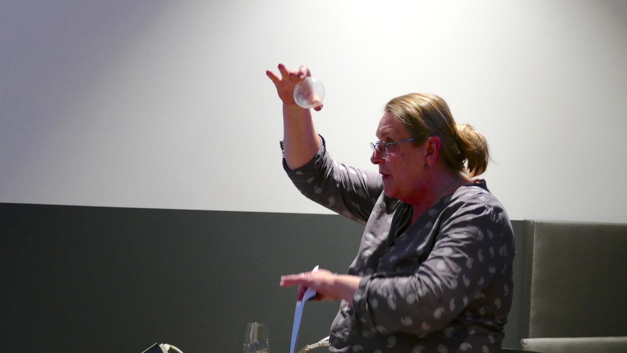Barbara gibt Einblicke in die Vielfalt und Spezialisierung des weiten Feldes der Glasverarbeitung. Das Publikum begleitet die Künstlerin auf eine persönliche Zeitreise durch ihre Erfahrungen und verschiedenen Tätigkeitsbereiche, die ihre künstlerische Entwicklung geprägt haben und schließlich zu ihrer aktuellen Auseinandersetzung mit Polarisationsobjekten und Polarisationsfotografie führten – Arbeiten, bei denen Glas unter polarisiertem Licht überraschende Farben und Strukturen sichtbar werden lässt.